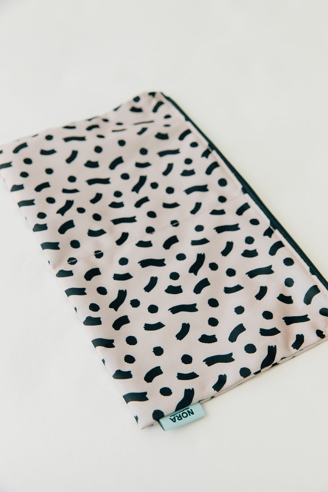 Available in our playful Celeste print, stylish Latte print, or sleek all-black, this bag has two separate zip compartments to keep clean pads apart from used ones. Store your fresh pads in one section, and pop used pads into the other until you’re home.